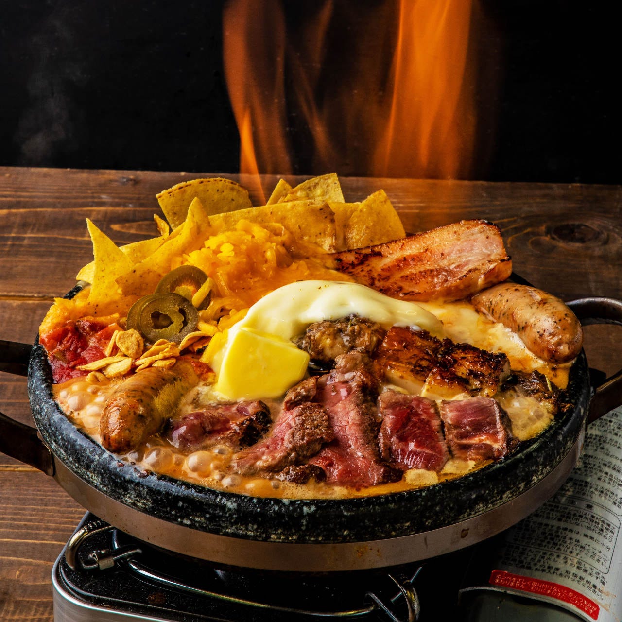 - メキシカンチーズナチョス ワカモレとサワークリーム、タコスミートのせ