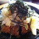 名物は鉄板にのった醤油味の「とんかつ茶づけ」