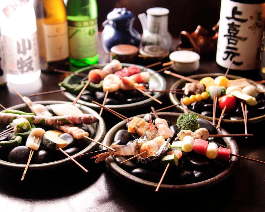 創業30年老舗の串揚げ専門店。約40種の串揚げを目の前で