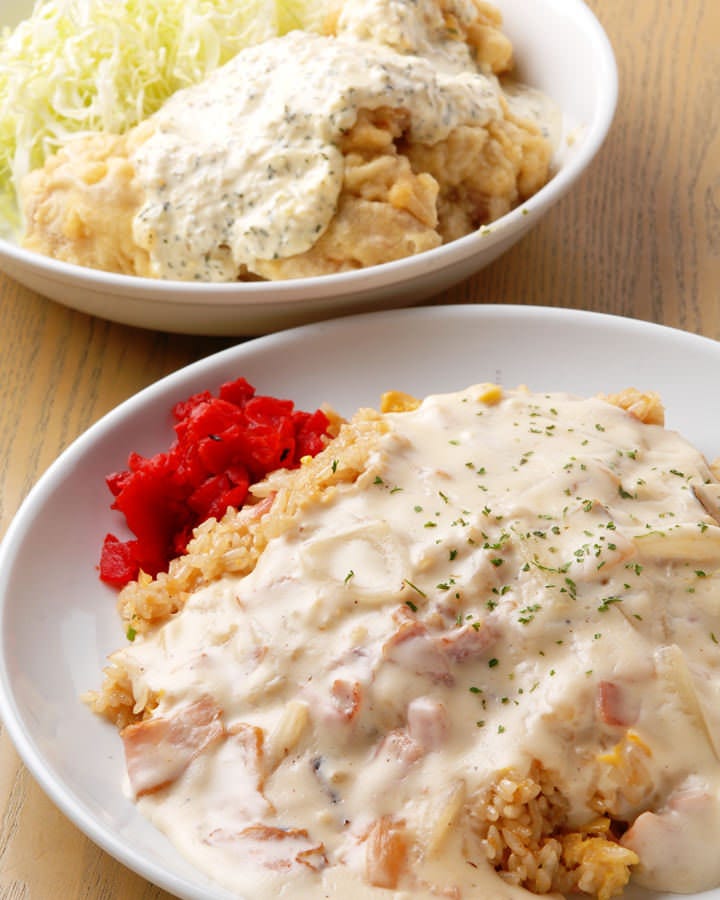 TV東京系列「ありえへん∞世界 日本全国47都道府県知られざるご当地B級グルメSP」にて見事グランプリを受賞した【にんにくピラフ ホワイトソースがけ!】人気のニンニクピラフの上に自慢のホワイトソースをたっぷりかけたにんにくとホワイトソースがベストマッチした自慢の逸品を是非ご賞味下さい!!
