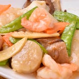 TV・雑誌など各メディアでも紹介された逸品"野菜の五目炒め卵焼きかけ" 春雨、豚肉、キャベツやニラなど具だくさんの野菜炒めの上にふんわりとかけられた玉子焼きをのっけた当店の名物料理。薄皮の内側に自家製味噌をつけて、お好みでネギを包んでお召し上がりください。