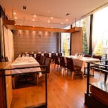 最大28名様までの利用可能な小上がりのフロア。奥のスペースをパーテーションで区切れるので、8~12名様までの少人数用の個室としてのレイアウトも可。様々なシーンでご利用頂けます。